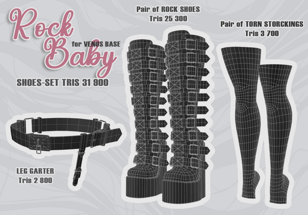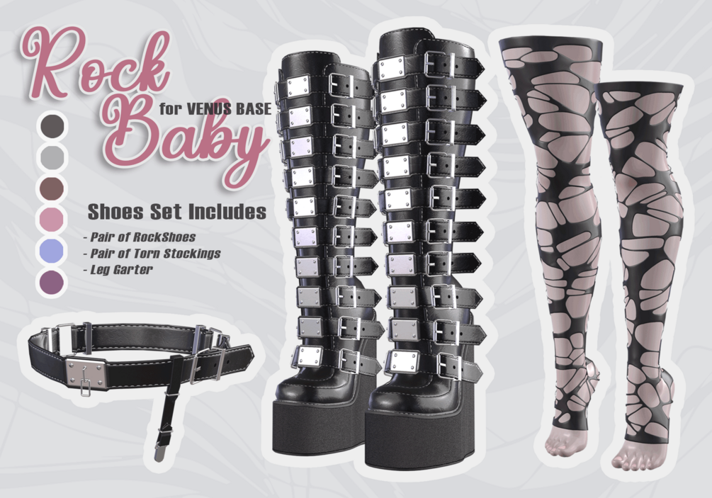 - incledes: Pair of Rock Shoes/pair of Torn Stockings/Leg Garter